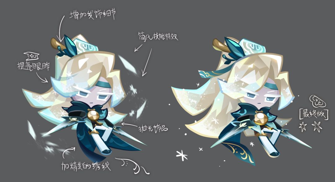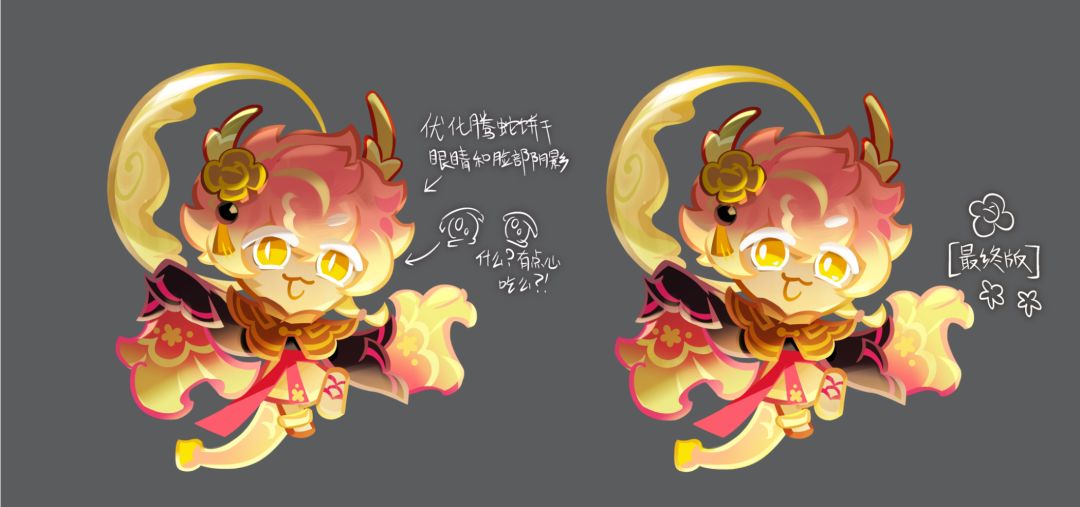 脸型、角色表情设计调整,主要还是将有点凶凶的眼神改的更符合他活泼可爱的气质(*╹▽╹*)