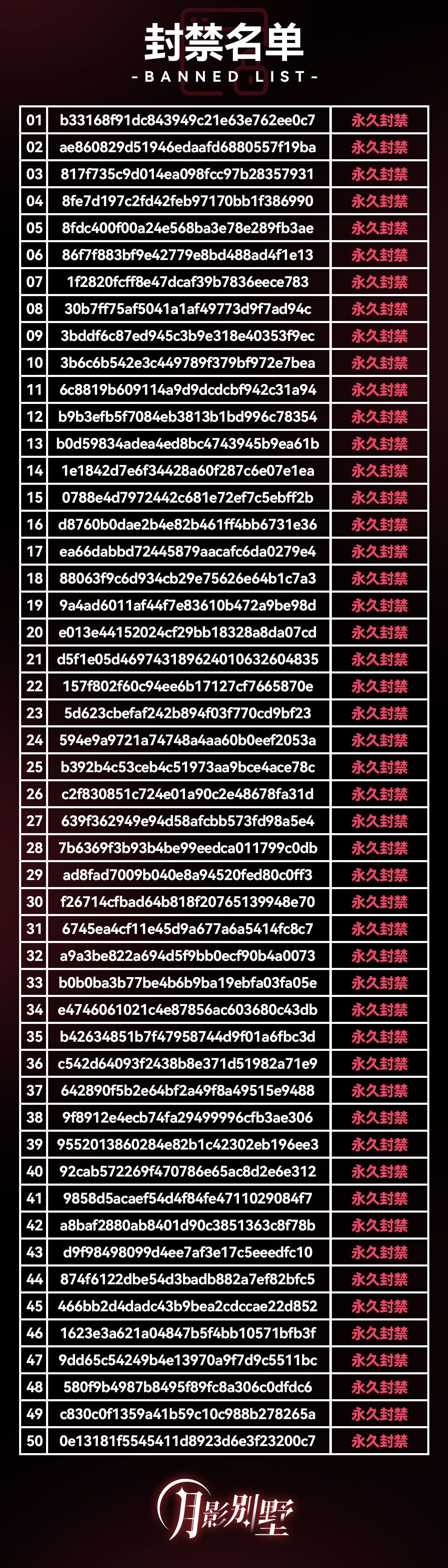 【月影别墅】封禁名单公示