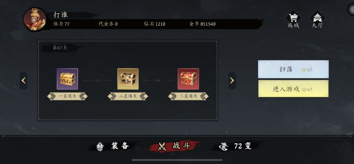 通关思路很清晰,那就是拾取关卡掉落的装备,目前商店的装备根本不可能挺过四大天王,除非你是大手操作集齐细致那种的也可以通关。