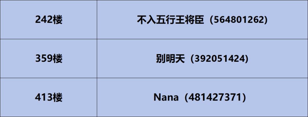注:部分中奖的楼层因楼层消失或未满足活动参与要求,中奖资格将顺延至一下层满足活动要求的楼层。