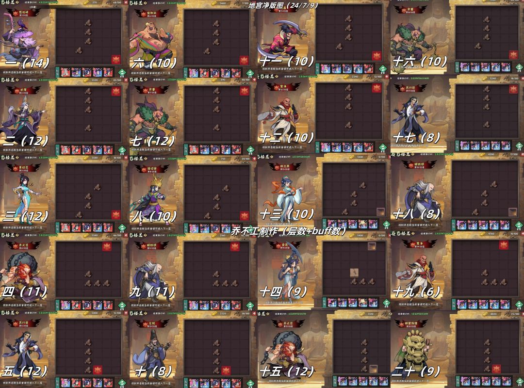 故地宫分为纯净版和buff完整版,为了更加方便,每种又分为上篇(1-10层)、下篇(11-20层)和完整篇(1-20层),大家各取所需即可。