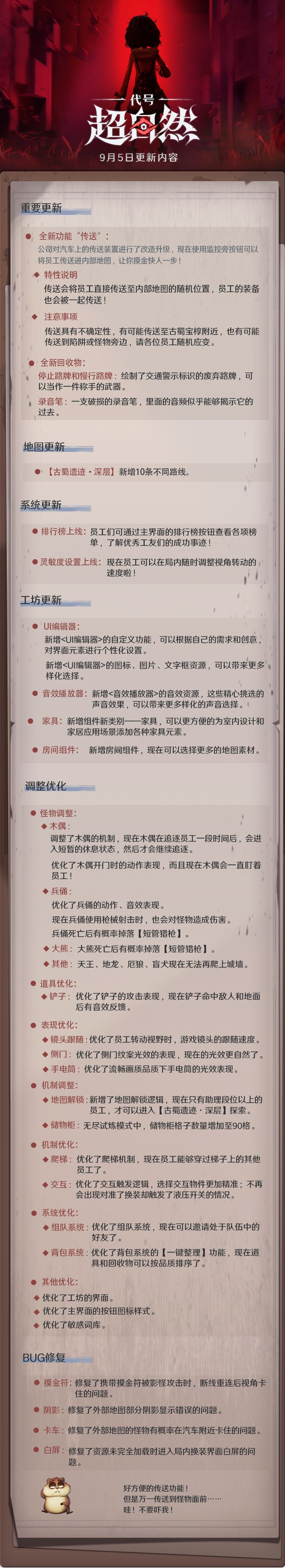 9月5日版本更新——传送装置,启动!新回收物路牌&录音笔上线!