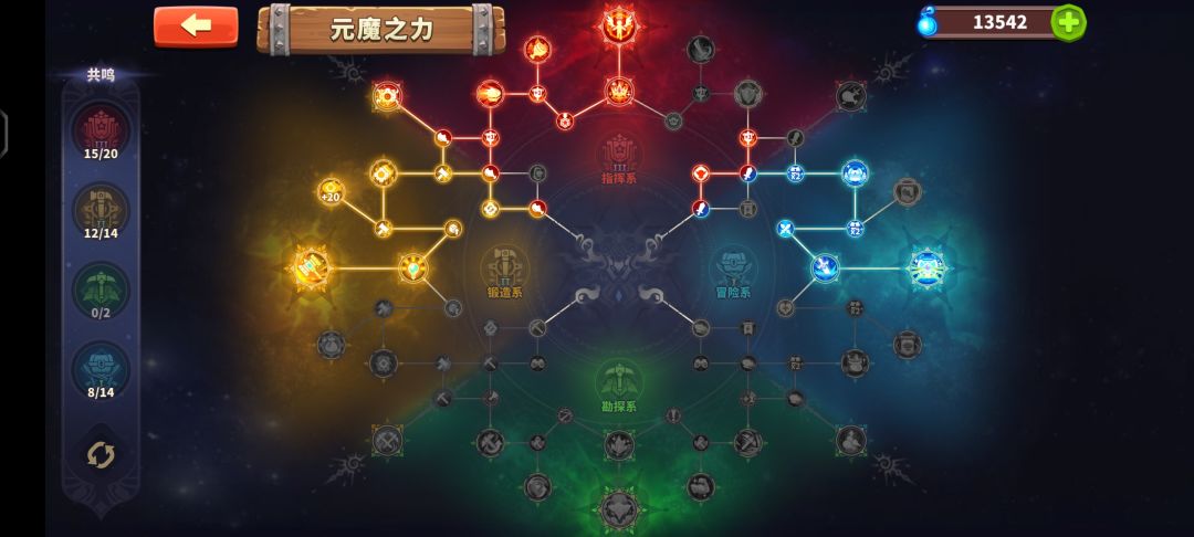 前期:需采用21绿(20绿)开局,在点出发现哀嚎天赋之前,食物充足情况下,采集“各阶段各级随机核心”,在点出发现哀嚎天赋后,开始采取46分(即采4成哀嚎,6成食物/随机核心),注释:4成哀嚎采集用于抵消重置元魔损耗的30%或更多。如果属于高配版,可以只采2-3成哀嚎。