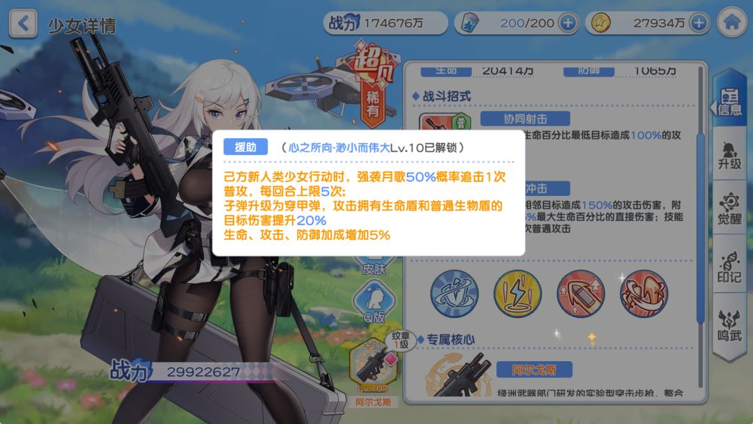 三星觉醒的话四族少女都是一样的,咱们直接来看强袭月歌的四星觉醒和心之所向三的效果: