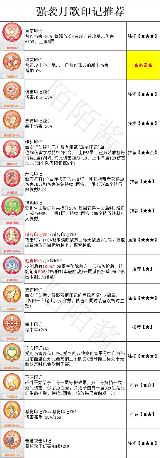 1、强袭月歌印记选择推荐