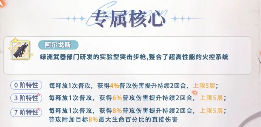 专属核心给的加成是增加普攻伤害和普攻附带buff直接伤害