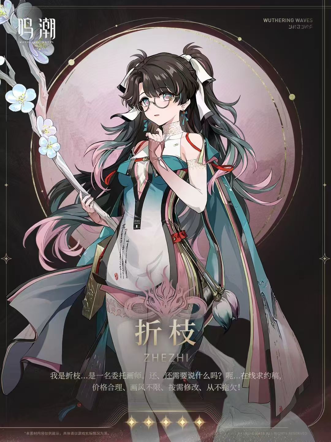 折枝的设计灵感似乎来源于古典东方美学,融合了传统与现代的元素。她的外观设计不仅体现了角色的个性,也与她的技能和背景故事相得益彰。折枝的服装以淡雅的色调为主,采用了传统汉服的元素,如宽大的袖口和精致的刺绣,展现了角色的高贵气质。服装上的图案和细节处理,如云纹、鹤影等,不仅增加了视觉上的美感,也暗示了角色与自然和谐共存的主题。