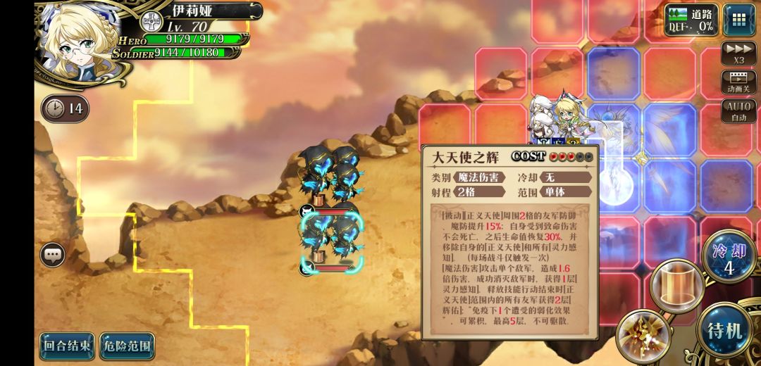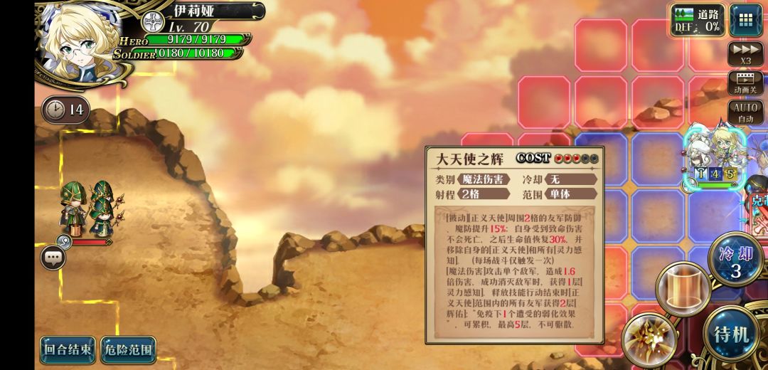 3.往左走到头用公理之辉,召唤大天使,再动接着往左走用大天使之辉把最远的秒掉