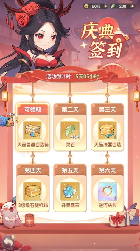 开服后第24天,游戏内六日签到活动开启,每日连续签到可获得庆典专属精美头像框、天品兽晶、天品法器等丰富好礼。