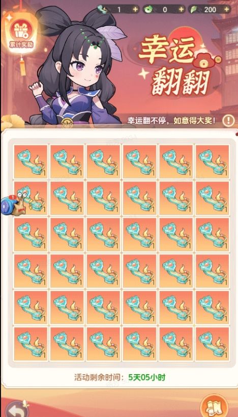 开服后第24天,游戏内等级达到15级,即可开启幸运翻翻活动。通过完成任务可获得如意道具,消耗如意可以翻开卡牌,具体消耗如意数量可看卡牌右下角。 卡牌底下藏着不同的大奖,每次翻牌会随机获得一份奖励,当翻开覆盖在大奖上的全部卡牌时可获得底下藏着的大奖。 累计奖励中会记录玩家在本次活动获得的所有奖励。