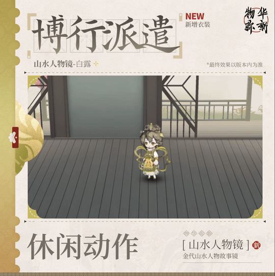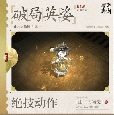 ※ 收集该衣装,即可拥有山水人物镜全新破局英姿、破局音效、派遣公司休闲动作。