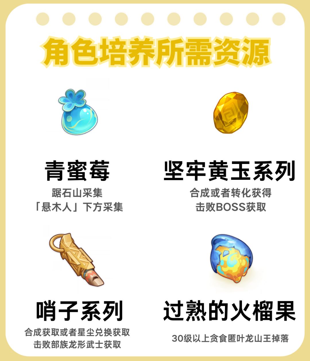 ⑥角色培养需要的材料及来源如图所示。