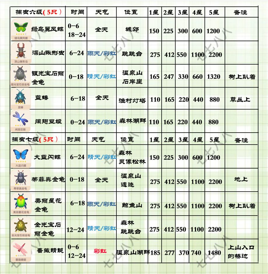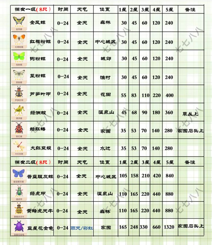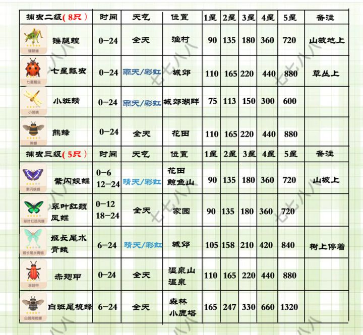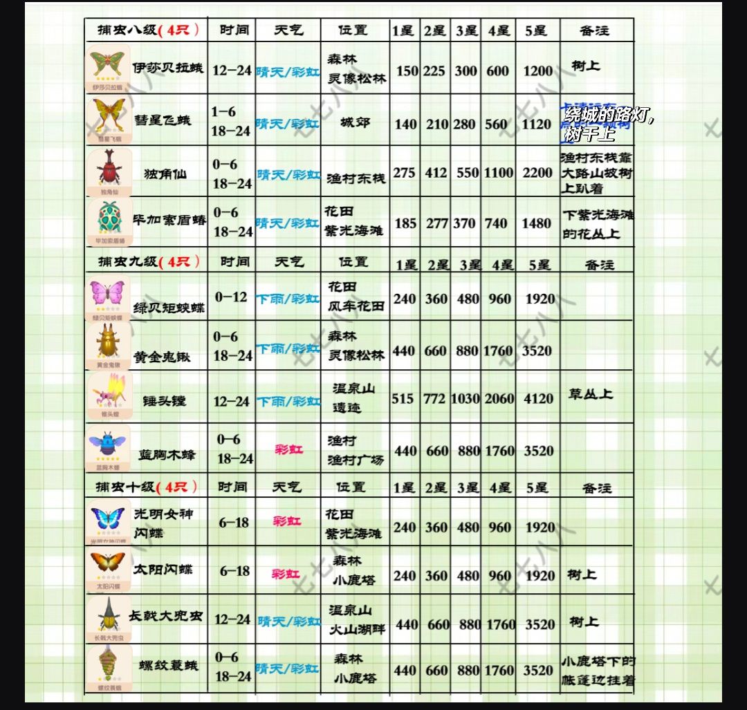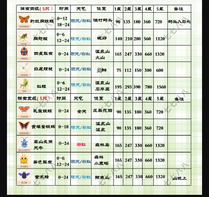 心动小镇(满级)捕虫售价及地图