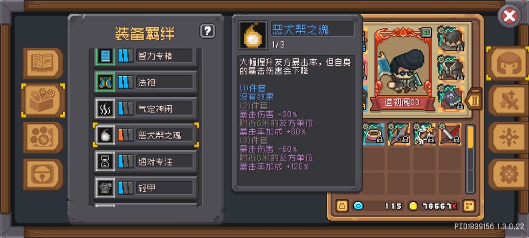 宠物携带恶犬帮首饰二件套可以为人物提供60%暴击率加成,且如果你还有办法为自己提供恶犬帮三件套的羁绊,那么人物将获得60+120=180%暴击率加成。