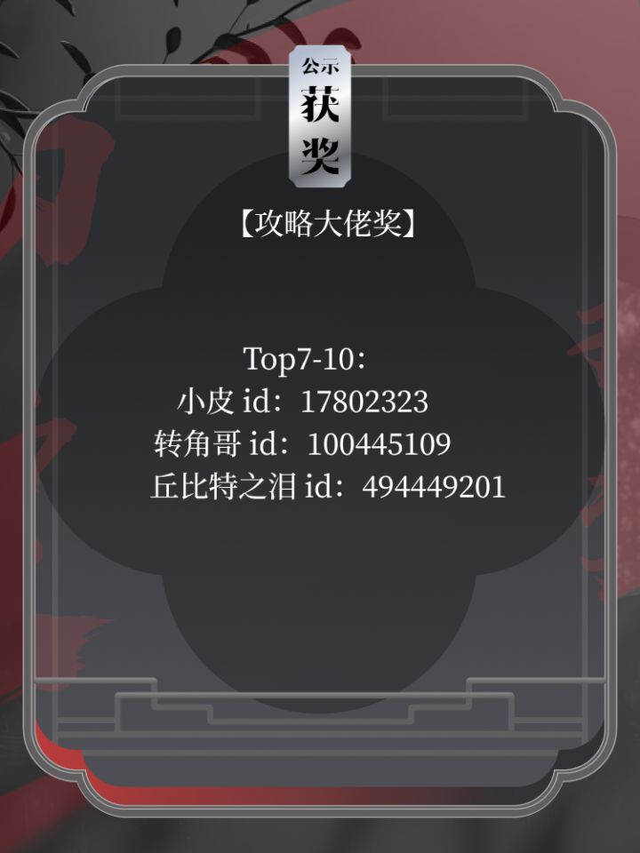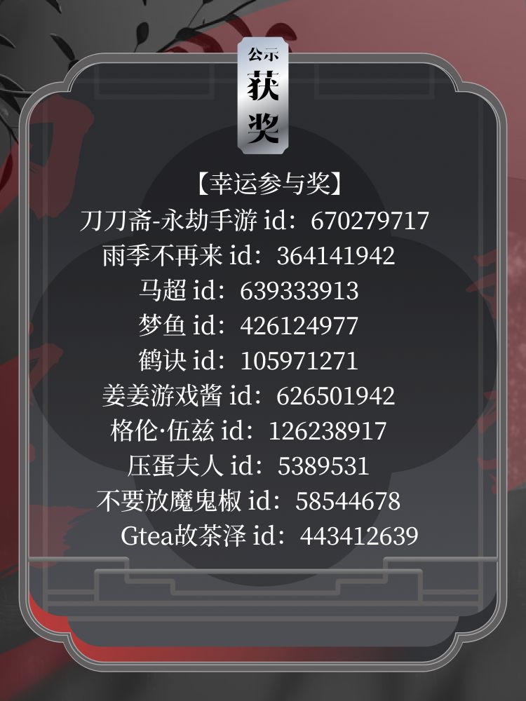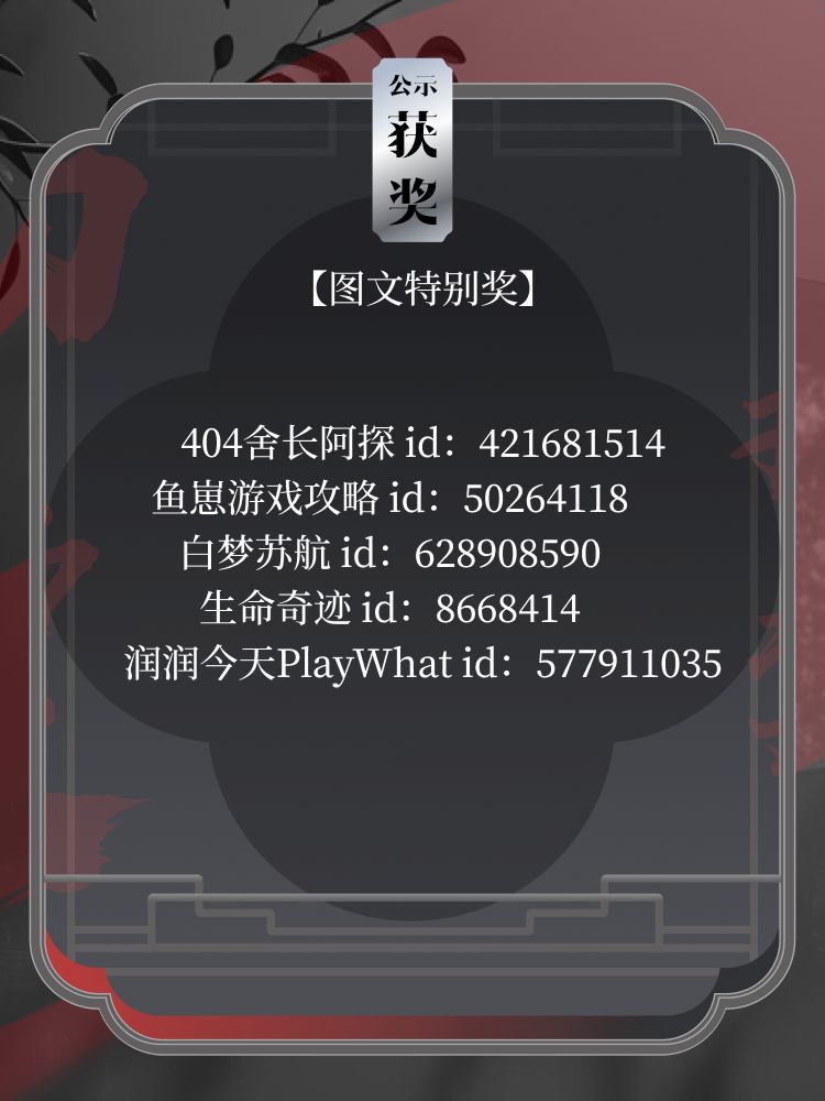 #永劫无间手游攻略征集 活动已结束,恭喜图中Tapper获奖~如对名单有异议请于9月8日23:59前进行反馈。