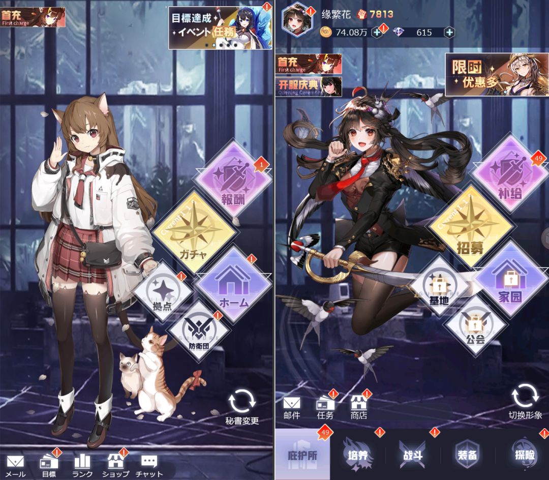 《妖灵战姬》日服现已火爆上线,为了让国服玩家提前感受到《妖灵战姬》的魅力,给大伙爆料一个中日服主页面对比图,大家喜欢国服版还是日服版呢?![[表情_微笑]](https://img-tc.tapimg.com/market/images/0f170d4b1ecf80c267e5a44b5992a199.png)