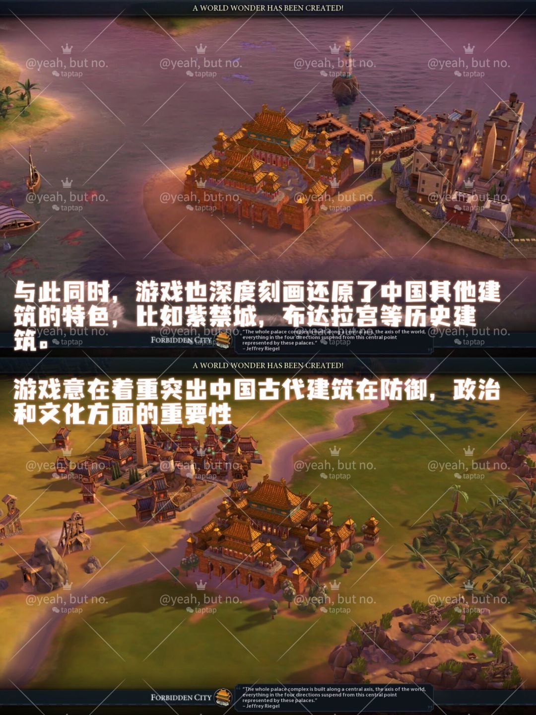 放在最后VI作为一款策略建造类游戏,以深度的玩法和历史文化元素吸引全球玩家。尤其在中国文明的选择中,游戏细致地还原了诸如长城、紫禁城等历史建筑,着重突出中国古代建筑在防御、政治和文化方面的重要性。