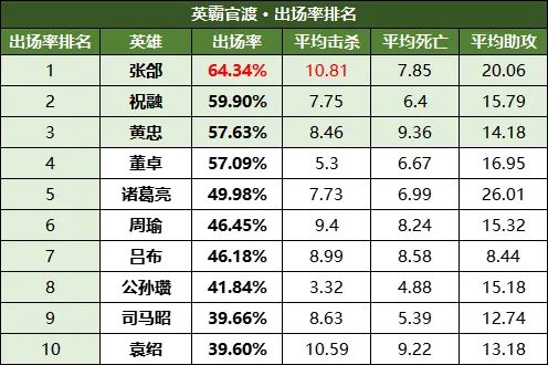 不知你喜欢的英雄有没有上榜?