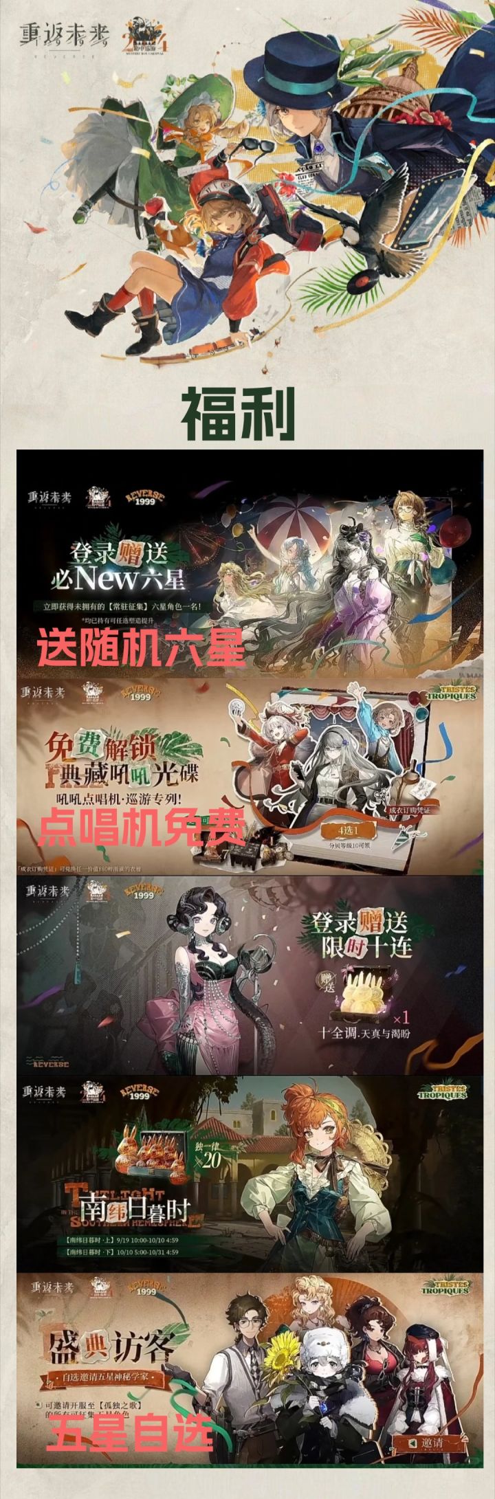 送new六星(仅限已加入常驻池的角色,即只到卡卡尼亚。如果你没有全持有就是随机一个new)