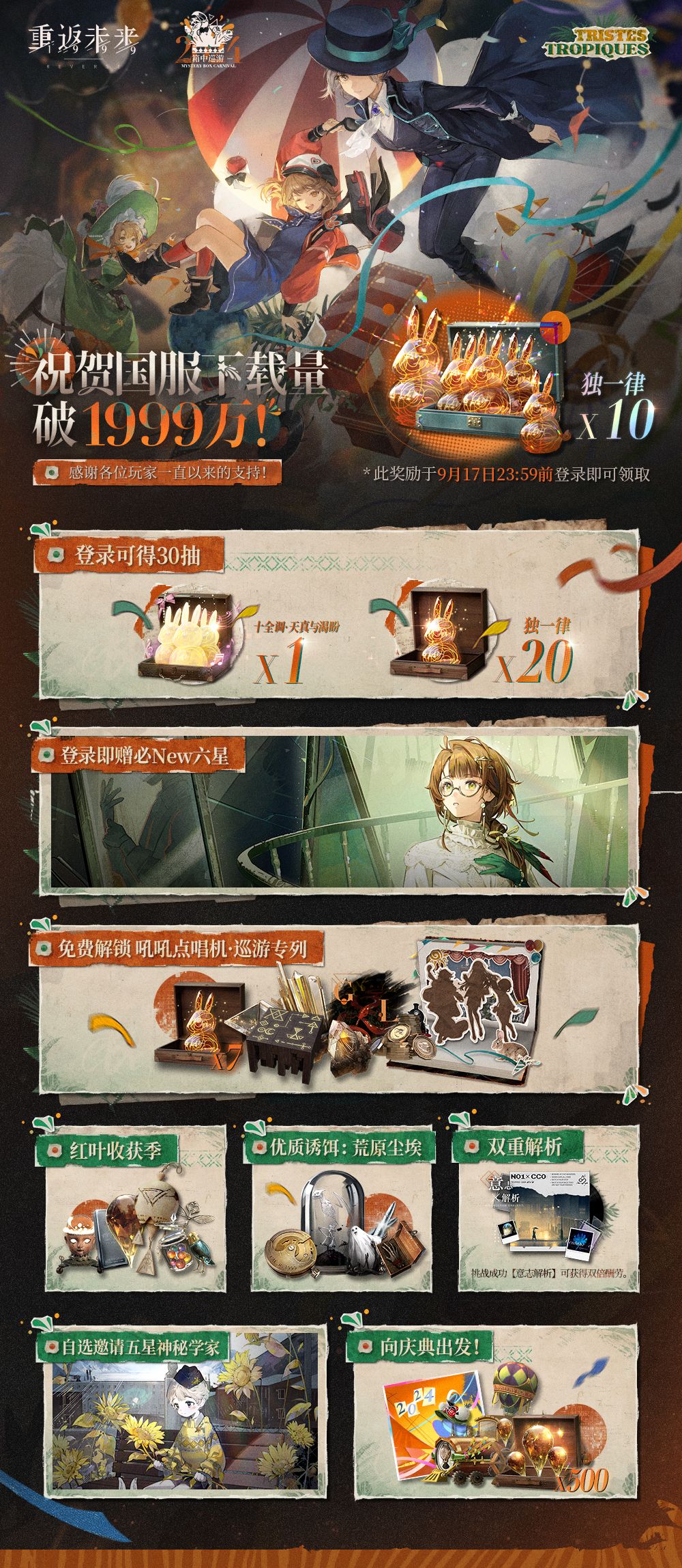 祝贺国服下载量破1999万!即日起至9月17日,登录即可额外获得独一律*10!