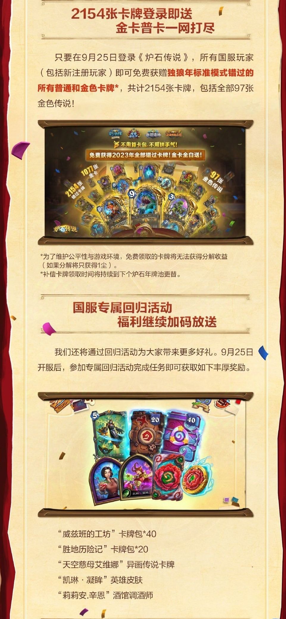 国服《炉石传说》回归补偿拉满 2023年所有卡牌金卡免费送