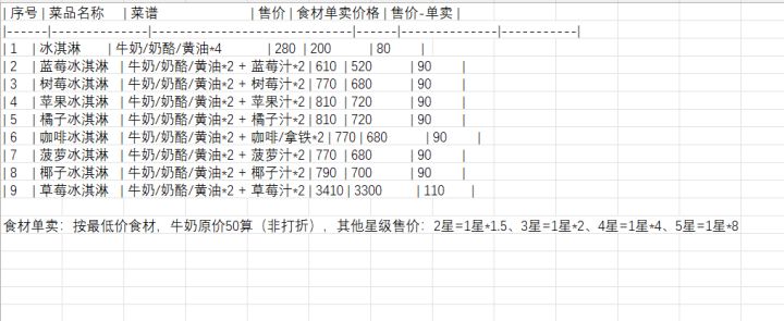 获得其他食谱:需要先用冰淇淋的食谱换表中的食材