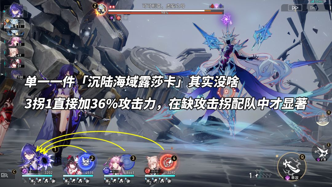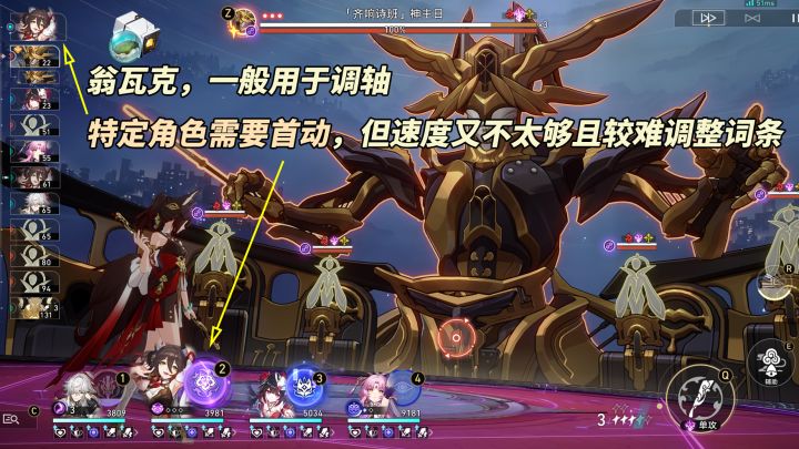 「生命的翁瓦克」常用角色还真不少,停云、低速阮梅、艾丝妲、知更鸟、椒丘。开局40%行动提前可调轴,并降低角色先手上buff或负面的速度压力。