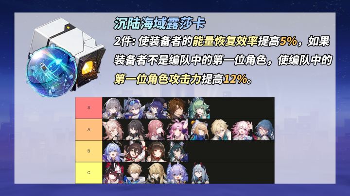 5%能量恢复,以及提升1号位队友12%攻击力。那一夜仙舟套与翁瓦克都喝醉了?全新的充能增攻遗器,辅助角色可得 擦亮双眼了~