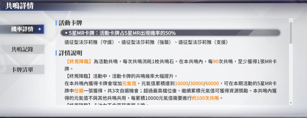 总之就是90抽一张mr保底,4星5星不一定,活动池100/300/600抽都能井一张。另外目前池子都是三职业混池。