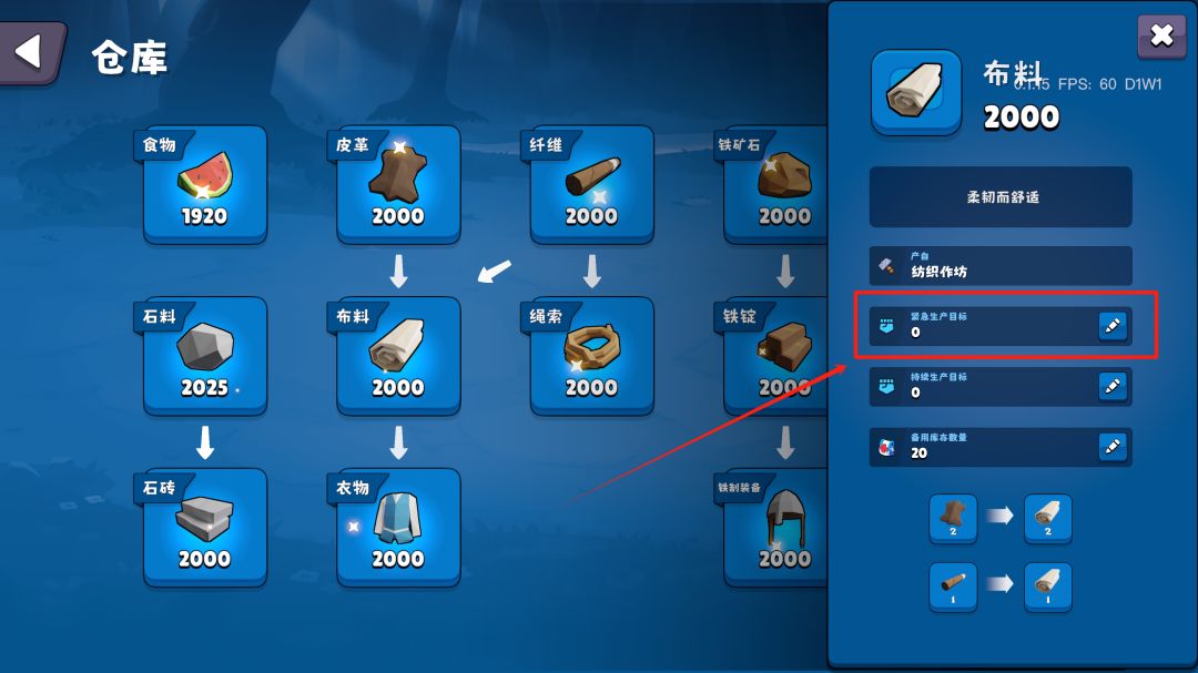 - 您也可以在此处调整「持续生产目标」和「备用库存数量」