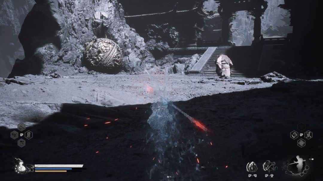 但打败他们后,只会获得图鉴和一些奖励,如果是想获得大铁球的精魄,那就要回到丹灶谷的翠云殿土地庙,往宫殿的主线道路走,经过打火焰山土地的地方,在路上的左前方,会发现和猪八戒一起掉下来的铁球,互动后就能取得精魄了。