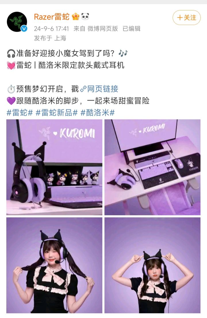 据雷蛇官方微博,雷蛇昨天宣布推出一款三丽鸥库洛米款头戴式蓝牙耳机,目前已上架