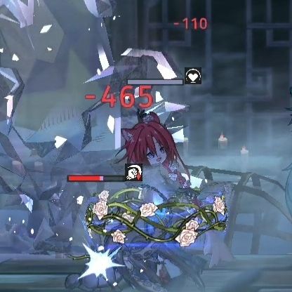 结论:无神人畅时,白蔷薇图受到伤害为110;有神人畅时,白蔷薇图受到的伤害为50,神人畅在场时,白蔷薇图能减免过半的伤害。