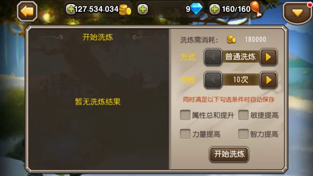 第二个则是“英雄洗练”,和官方资讯里说的吻合度比较高,比较功能名字就叫“洗练”。通过消耗金币/钻石可以获得属性,属性达到一定数值会额外解锁词条,传奇服的金币消耗大头。