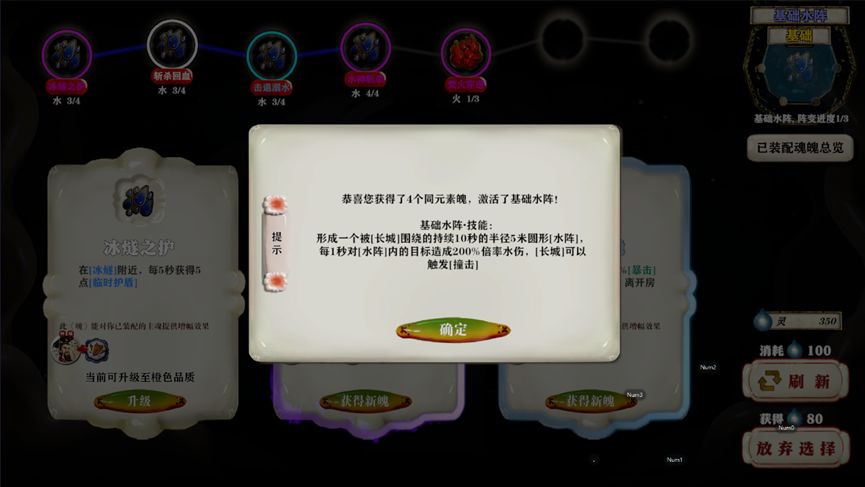 粉>蓝>白,遇到相同魄可进行升级,每回仅能做一次选择,可以进行刷新挑选。