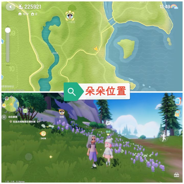 朵朵位置:朵朵在小鹿塔下方