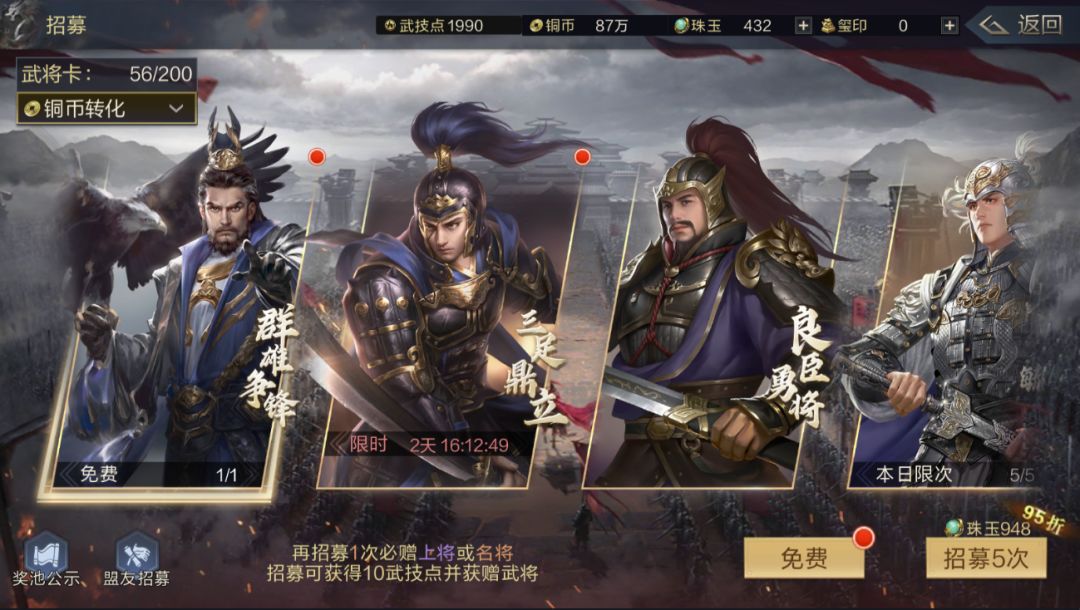 3.兵力的补充,从现阶段的测试来看,兵力补充要花费的时间确实不少,一定要选择适合自己的时间去补兵,不要等到想用兵的时候发现自己没有兵了,这点很重要。