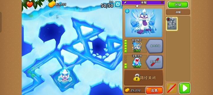 520冰猴,1位置锤到最高一个moab离开范围换2位置,moab过去了没回到2位置附近时换3位置,避免2位置打爆moab小气球飞走抓不住,打残moab即可。换3位置后等待即可。