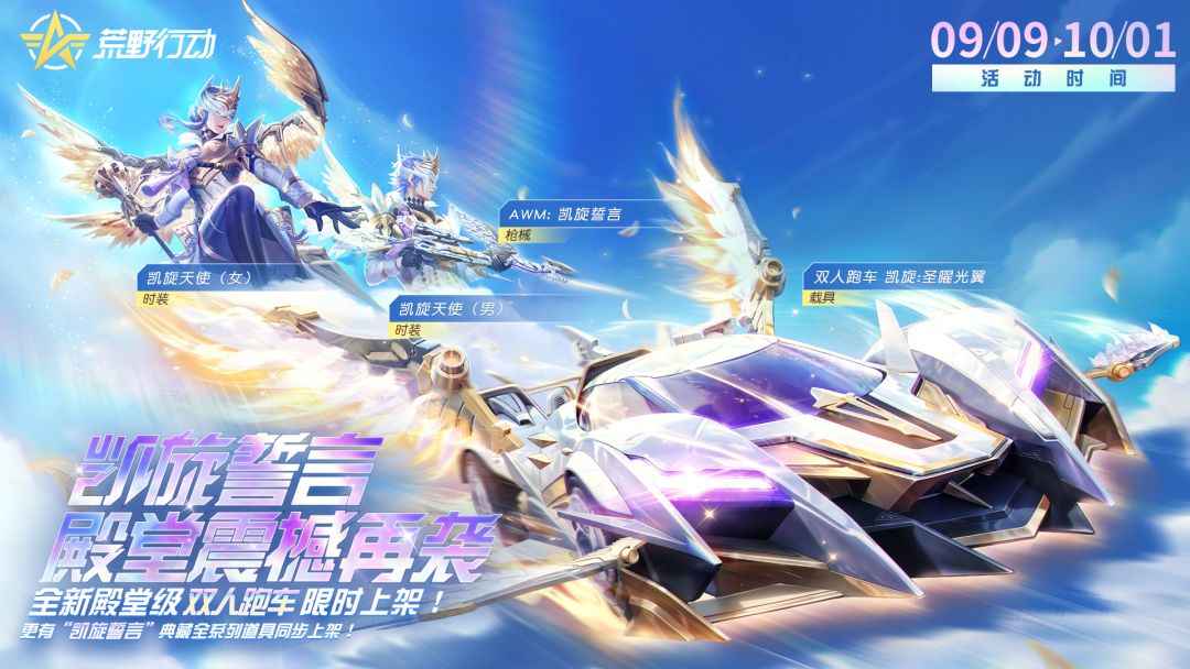 不过玩笑归玩笑,但全新殿堂级双人跑车是真的要来咯!【凯旋:圣曜光翼】展开双翼纵横荒野,还有优化归来的经典枪械【AWM:凯旋誓言】和时装【凯旋天使】,荒弟已经开始期待明天了!