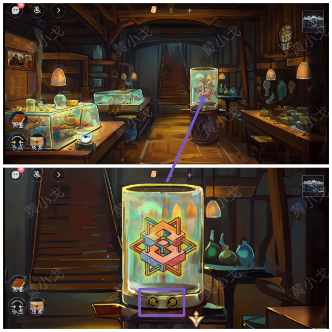 7.(地下室)点击房间中央的装置,双手操作旋钮补全图形(跟对友配合)