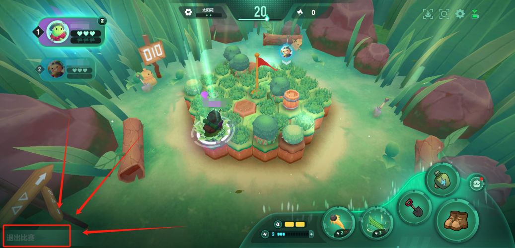 在这个非常不起眼的角落里边,有个退出比赛的按钮