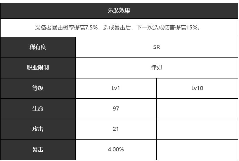 短暂的休息乐装图鉴