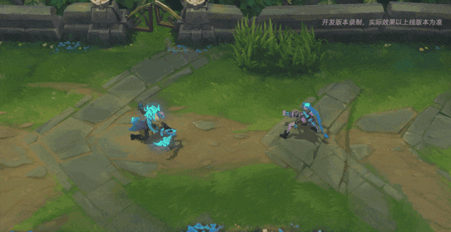 派克以极快的速度向前翻滚突袭,并在原地留下一个青色的蝎子灵体和暗紫色的直方路径。短暂的延迟后蝎子灵体会立刻跟上派克的步伐,以突刺的形态回到派克体内。蝎子灵体在回收时,会对碰到的敌人造成伤害和眩晕效果。