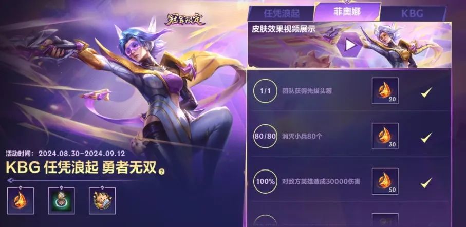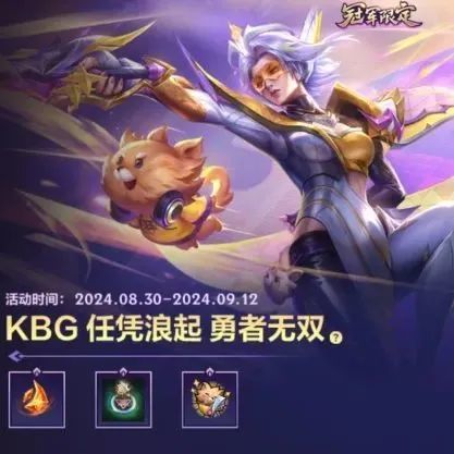 任凭浪起,勇者无双!截止至9月12日,召唤师拥有KBG 任凭浪起 破浪 菲奥娜和KBG 任凭浪起 菲奥娜皮肤,即可领取限定回城特效-KBG·凯旋!