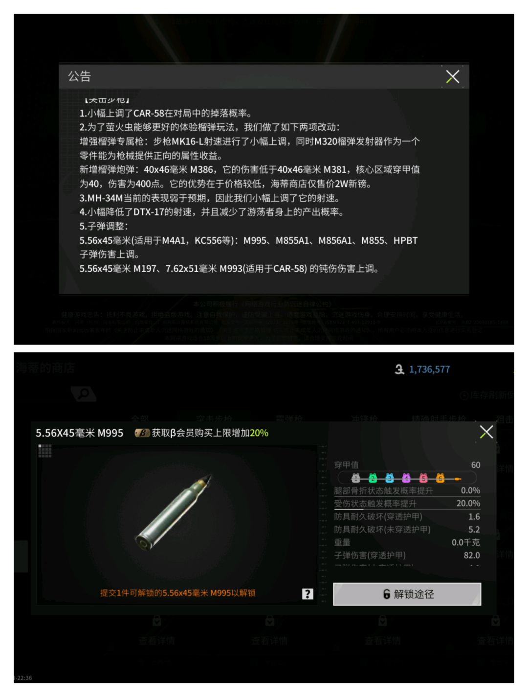 从子弹调整来看,5.56×45的子弹伤害,钝伤伤害的双重上调,直接将子弹地位迎来了大上升。毕竟556本身的核心思路就是利用发射器的高稳定性洗甲修腿。