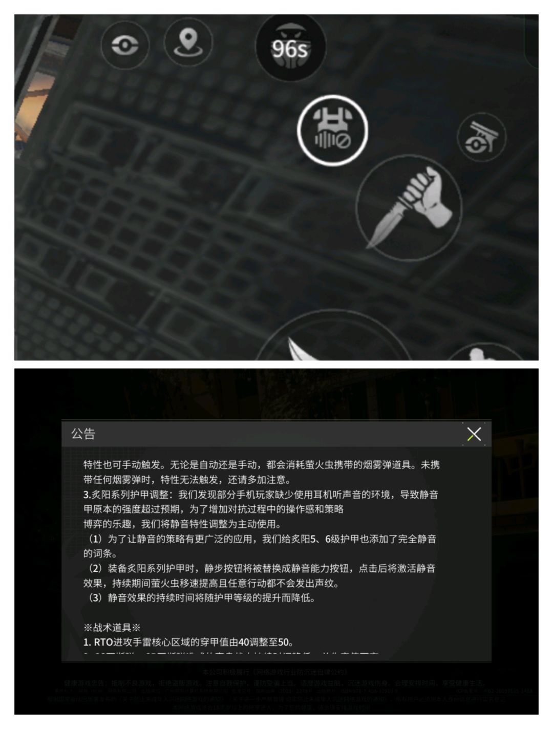 所以推荐刀仔选择三甲左右,要么就是直接六级静音甲+满改枪。前者在防护和时长方面最优解,后者则可配合满级枪械打信息差