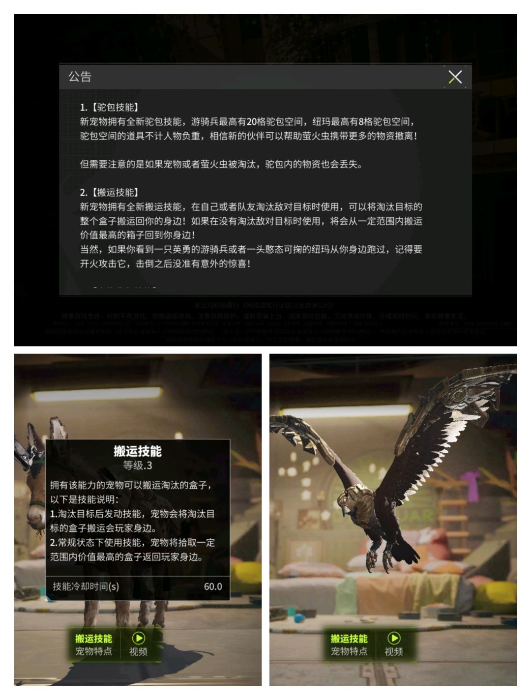 而全新宠物的搬运功能,也是为大图和截商设计的。这个功能在单纯作战方面,不如第一赛季的幻影终结好用。但是对于狙仔和大图的远距离作战当中很舒服。