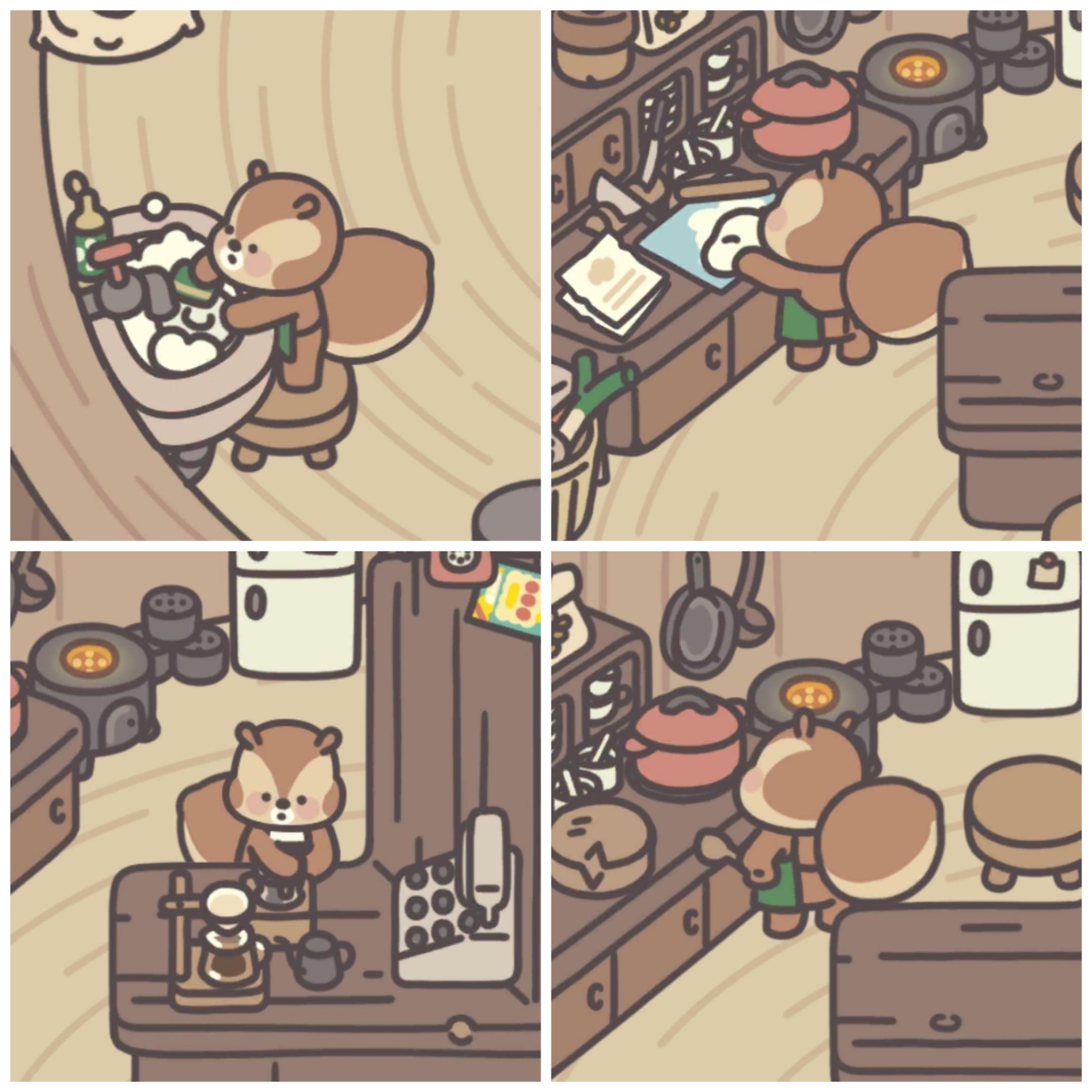 ◎有两张小松磨咖啡的:一张是磨咖啡;一张是磨咖啡+树懒先生点了一杯橡子咖啡。