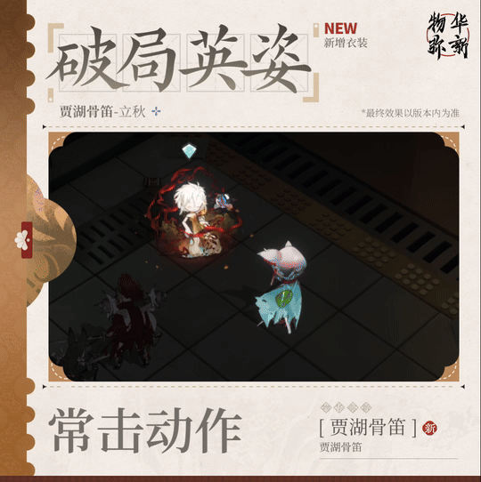 ※ 收集该衣装,即可拥有贾湖骨笛全新破局英姿、破局音效、派遣公司休闲动作。