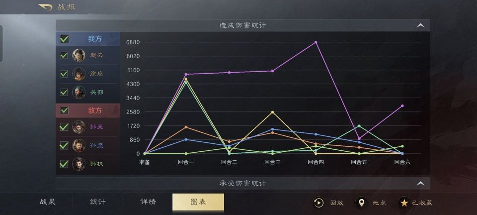 特别鸣谢游戏ID名为“久周丨糊涂涂”的玩家朋友,他的话本孙坚、孙权和孙策摆出雁形阵,将对面的赵云、徐庶和关羽组成的精锐蜀骑击败。战斗只进行到第四回合,徐庶和关羽便被这支新三孙父子队给击溃了。久周丨糊涂涂是如何盘活这父子三人的,他们之间的配合又有哪些精妙之处,接下来的段落就进行精准复盘。